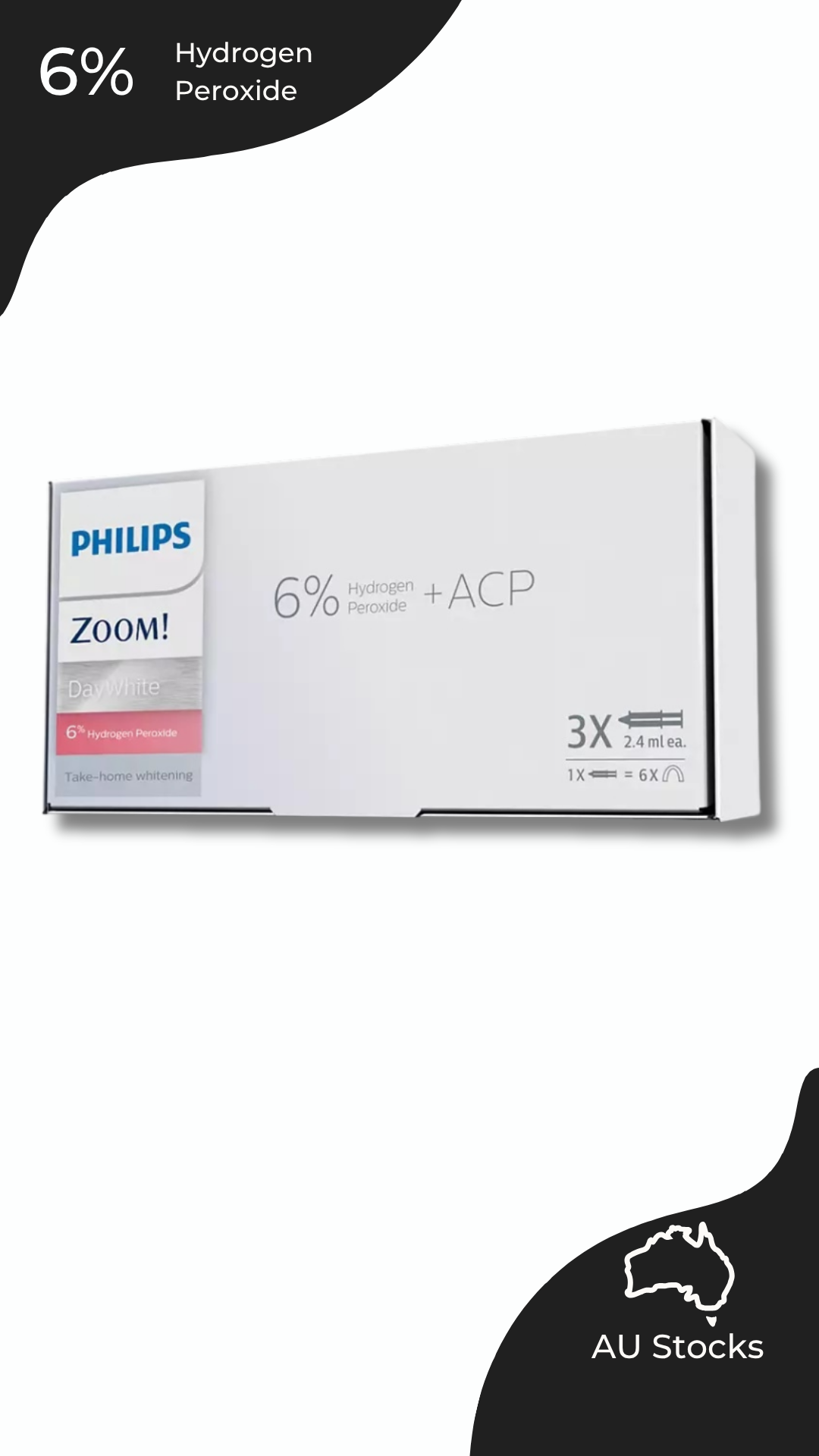 Zoom DayWhite provides an easy and convenient way to whiten your smile in up to two weeks. Philips Zoom DayWhite utilises high-potency gels to provide quick results in a short period of time making it ideal for those with a busy lifestyle. Perfect for refilling your whitening kit. Little to no sensitivity, safe and convenient. 30-60 minutes wear time twice daily.
